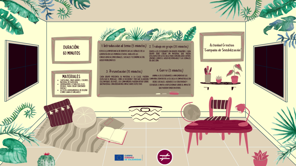Actividad 3: «Campaña de sensibilización». Destinada a permitir que el estudiantado cree sus propios materiales para sensibilizar sobre la ludopatía juvenil.
